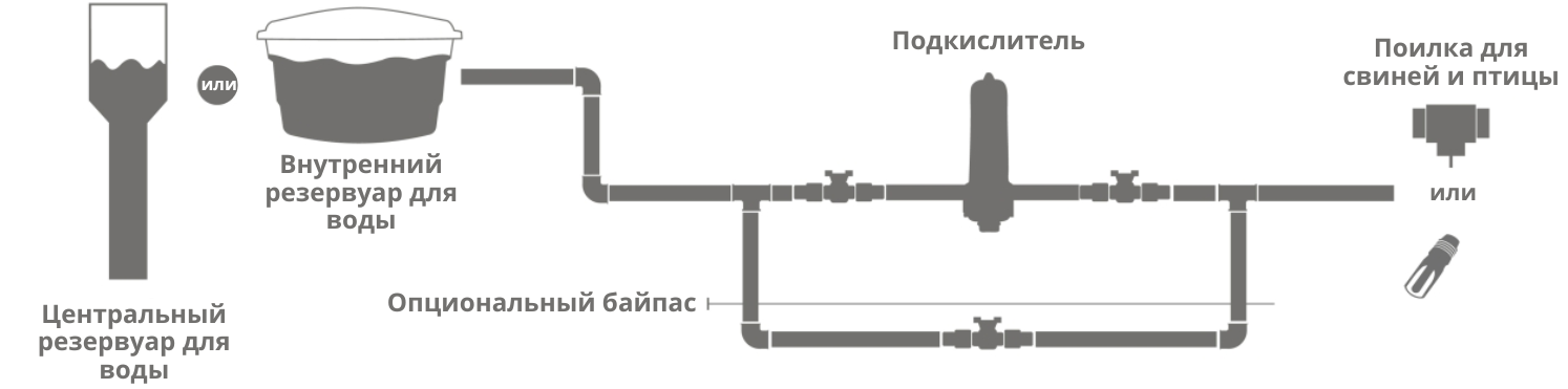 Подкислитель Kobra следует монтировать в легкодоступном месте между резервуаром для воды и поилкой для животных. Подходит для систем водоснабжения на птицеводческих и свиноводческих фермах. Легко обслуживается операторами.